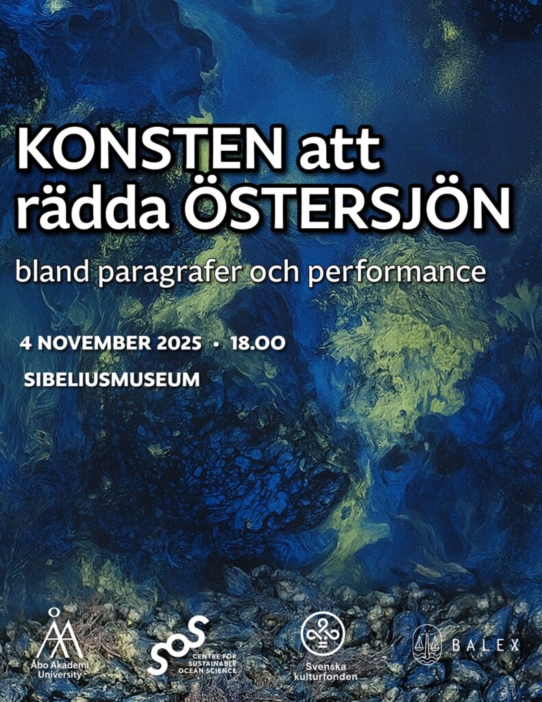 Welcome to an evening where law, art, and marine ecology meet! This unique event, part of the SOS Booster-funded project Saving the Baltic Sea with Law?, brings together lawyers, researchers, and artists to explore the future of the Baltic Sea through an interplay between research, law, and performance art.
